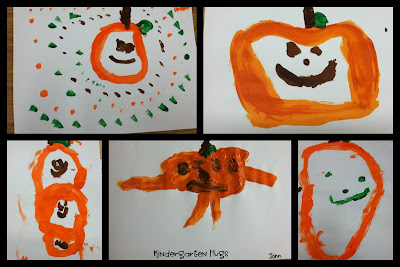 I let the students choose what size of paper they wanted (12X18 or 9X12). They then got to choose if they wanted a short, fat pumpkin or a tall, skinny pumpkin. (They all reminded me that those different kinds of pumpkins were opposites). Each student also got to choose if they just wanted to paint a pumpkin or if they wanted to paint a jack-o-lantern.  Then I let the painting begin.