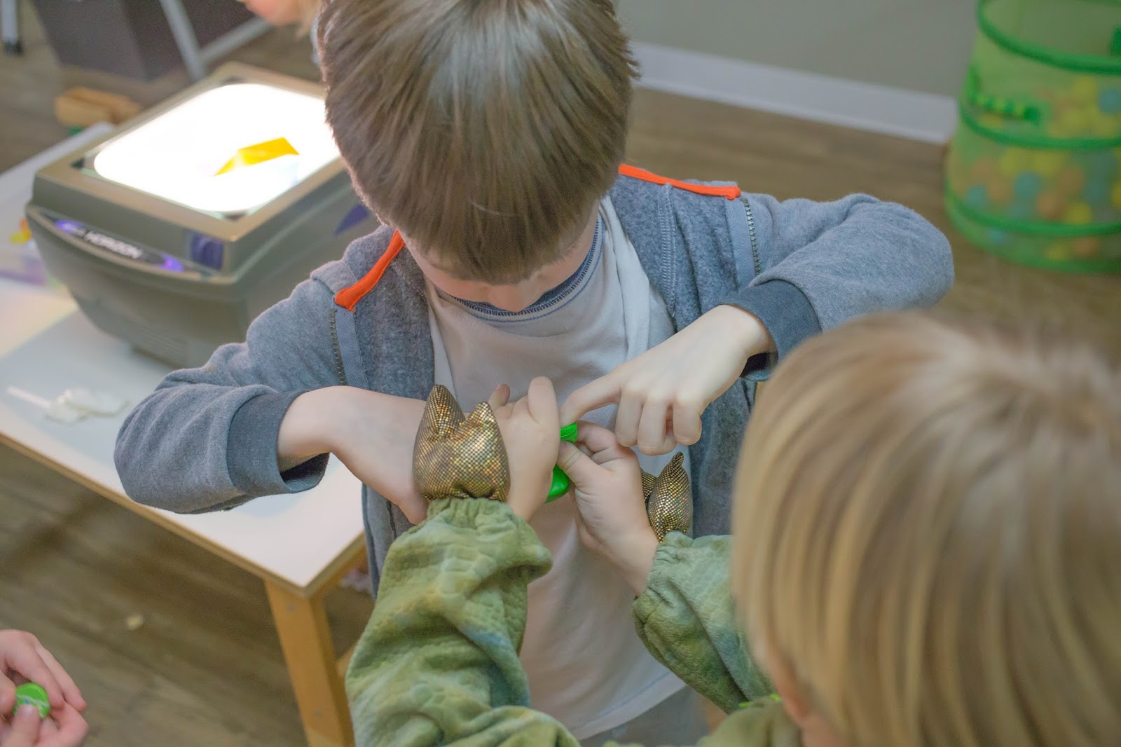 At first, all of the children, every single one grabbed a puppet. This left NO ONE to observe the puppet show. Oliver (whose idea this was to begin with) was so incredibly sad. The other children heard him, and demonstrated AMAZING compassion. It looked like this: