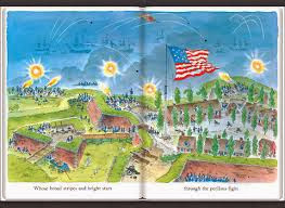 I found this AWESOME Star Spangled Banner Freebie at the Crafty Classroom blog! It is wonderful. I laminated the pages and made a couple classroom books. The illustrations are wonderful and really help with the vocabulary.