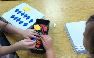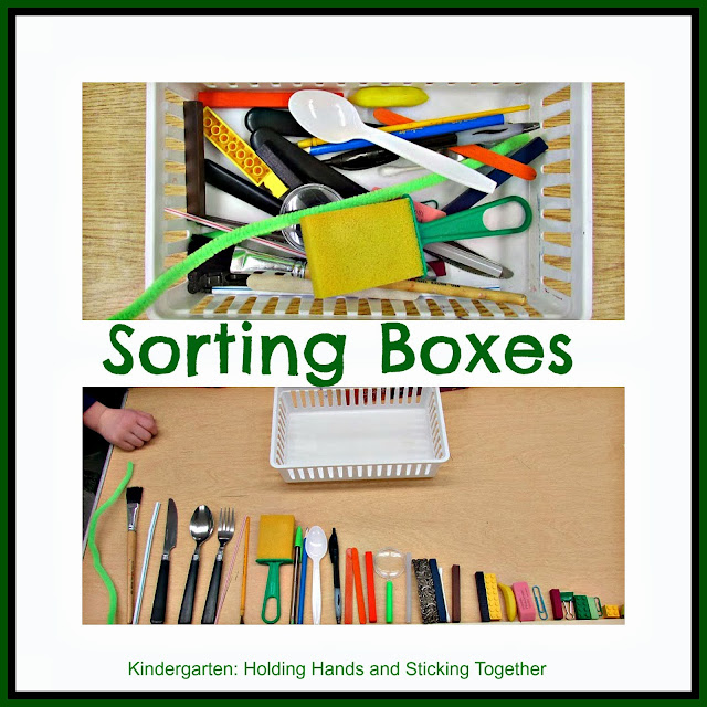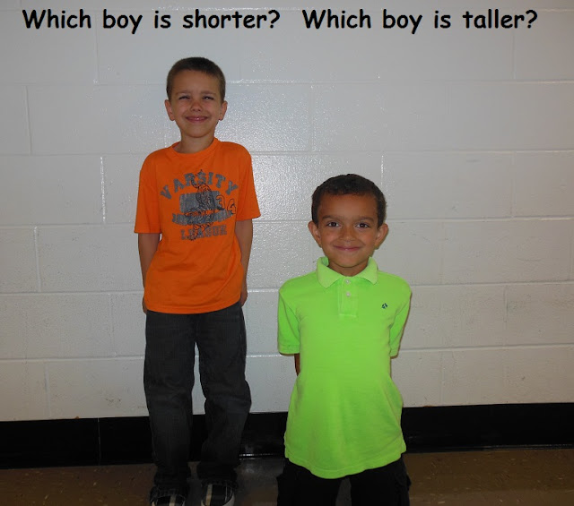 I made a few boxes of random items for the children to sort from biggest to smallest. They worked with a partner and had a ball!
