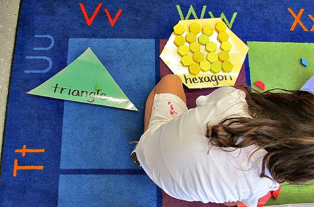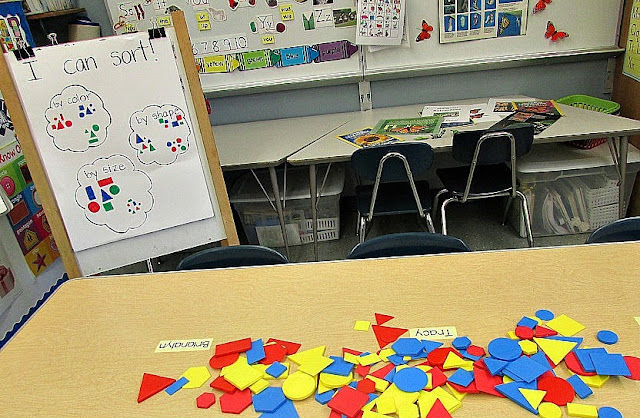 Make a 12 and 20 poster for the wall if those numbers are tricky for your students, so they see it everyday. My kids had a hard time remembering the name for rectangle and hexagon, so I used those shapes as the counters.