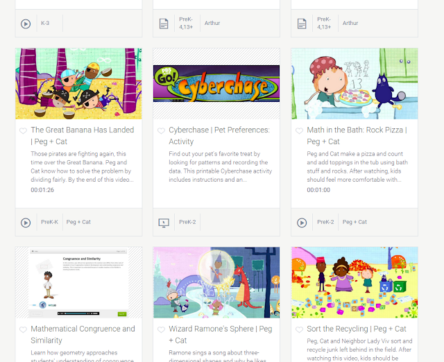 Peg + Cat is a wonderful show for primary students that focuses on lots of math concepts. The kids love it and learn at the same time! If you haven't met Peg yet- you'll love her. At the site, you can play games and watch full videos or clips,